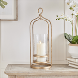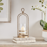 Lyrical in form, yet substantial in cast aluminum, this hurricane also features hammered glass. Topped off with a decorative, yet functional loop handle, it is at home in the transitional to modern setting.