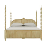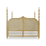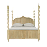 This bed is a striking blend of tropical elegance and sculptural design, featuring a light, natural wood or honey-toned rattan finish that feels both airy and grounded.