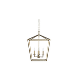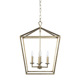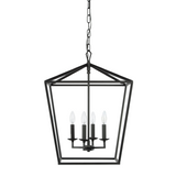 The Carmela Chandelier is the urban modern twist on a classic style lantern made of black/gold iron. The clean lines open to four lights and make the perfect lighting for a bedroom, entryway, kitchen or dining area.