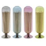 We discovered this vessel shape in Japan and while we weren’t certain what it was for, we knew it was perfect for us. The original was tiny and clear so we made it large enough to hold our best-selling 8" matches and updated it in this sophisticated color palette. Each piece is hand blown and fitted with a cork stopper in the bottom. It reminds us of a vintage glass cloche, originally used to protect emerging seedlings in gardens. Once the matches are gone, it can be a curiosity used to display a found specimen.