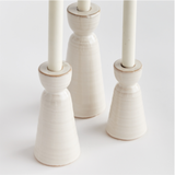 Made of a high-fired, durable stoneware, and finished with a dynamic reactive glaze, these candle stands are a beautiful trio. Pair with a few tapers of your choosing and add warmth and light to any space.