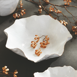 With crimped edges and natural form, this decorative tray is a real statement-making centerpiece. The hand-brushed gold tipped edges are electroplated for shine and durability. Place atop a few art books on coffee table, or on a side table for a stunning look.
