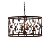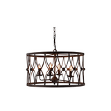 The Mildred Chandelier is a four light round fixture made of an iron finished with multiple brushed colors of bronze and gold. It's enveloped with metal hourglass detailing and perfect for any casual farmhouse chic style home.