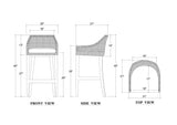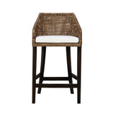 This barstool combines natural elegance with modern comfort. It features a handwoven rattan frame in a rich, warm finish, paired with a plush white upholstered seat cushion for added softness. The low-profile arms and curved backrest create a supportive yet relaxed seating experience, while the dark wooden legs with footrests provide durability and stability. A stylish piece that brings texture and sophistication to kitchens, bars, or casual dining spaces.