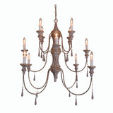 The Sofia Chandelier is a French provincial style fixture made of iron and finished with multiple tones and accents of gold dust. This shabby chic chandelier is perfect for any dining room or living room.