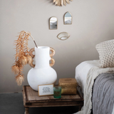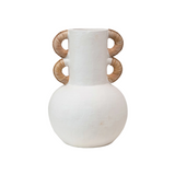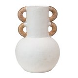 This vase is the perfect unique piece for any table top. Made out of terracotta, this vase features a beautiful cream color and rattan wrapped handles. This vase easily anchors entryways, nightstands, or dressers and blends in with any decor. Fill with fresh or faux florals for an easy decoration.
