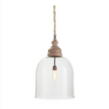 Alone or as a pair, this oversized cloche pendant is an elegant mix of glass and wood. You don't have to be a vintner to see that it's a real show stopper.