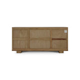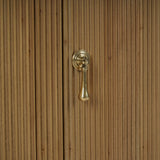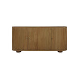 This sleek sideboard combines modern design with natural texture for a refined yet relaxed aesthetic. Crafted from warm toned wood, it features beautifully ribbed paneling across the front and softly rounded corners that lend a smooth, contemporary silhouette. Four discreet doors open to reveal generous interior storage, making it as functional as it is stylish. Finished with subtle brass hardware and a low-profile base, this piece adds effortless sophistication to dining, living, or entry spaces.