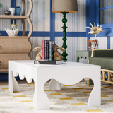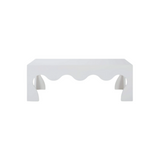 The Chloe Coffee Table in True White features a bold, sculptural silhouette with playful wave-like cutouts. Its modern design and clean finish make it a statement piece perfect for contemporary and eclectic spaces.
