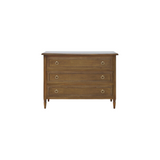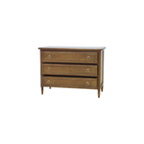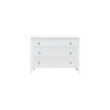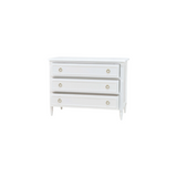 The Cholet 3-Drawer Dresser exudes classic elegance with a refined touch. Featuring intricate beaded detailing and gold ring pulls, this dresser combines timeless sophistication with functional storage. Its crisp white finish enhances any space, making it a versatile and stylish addition to bedrooms or living areas.