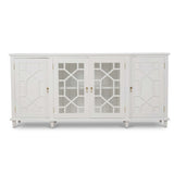 The Grosvenor Credenza exudes timeless elegance with its true white painted finish and intricate fretwork detailing on the glass-paneled doors. Featuring ample storage space behind its four doors, this sophisticated piece blends classic design with modern functionality, making it a stunning addition to any living or dining space.