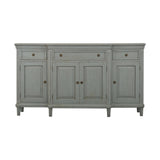 A shaped front and timelessly clean look beautifully grace the Hayward Media Cabinet. With three drawers and four cabinet doors, this cabinet creates ample storage and boasts solid mahogany construction with brass hardware.