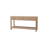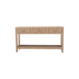 The Kagu Console Table showcases natural elegance with its wrapped rattan finish. Featuring three drawers for storage and a spacious lower shelf, it blends functionality with organic texture. Its clean lines and warm tones make it a versatile addition to entryways, living spaces, or dining areas.