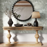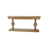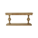 The Kraton Pedestal Console Table showcases timeless elegance with its sculpted baluster legs and fluted detailing along the apron. Finished in a warm fruitwood tone, this piece brings classic charm and refined craftsmanship to any hallway or living space.