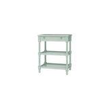 Expand display and storage space while adding a quaint décor element to a vintage-inspired space. Built from solid mahogany, the Melissa Side Table provides drawer storage as well as display space on two open shelves.