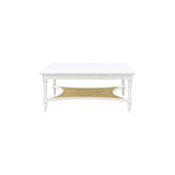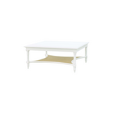 The Montego Square Coffee Table in Architectural White with Natural Rattan brings timeless elegance to any space. Featuring gracefully turned legs and a woven rattan shelf, this table balances coastal charm with classic sophistication. Its crisp white finish complements the warm texture of rattan, making it a versatile centerpiece for your living room.