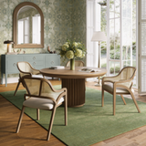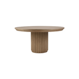 The Portobello 60" Round Dining Table showcases a refined, contemporary design with a Sandbar finish. Its fluted pedestal base adds architectural elegance, while the spacious round top creates an inviting setting for gatherings. Perfect for both casual and formal dining spaces, this table combines style and functionality effortlessly.