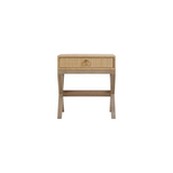 The Renoir Bedside Table blends natural textures with modern elegance. Wrapped in finely woven rattan with sandbar-finished legs, it exudes warmth and sophistication. A single drawer with a subtle, rounded pull provides convenient storage, while the open lower shelf adds versatility and charm to any bedroom space.