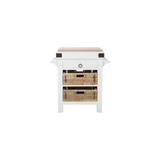 This Sonoma Island blends classic elegance with coastal charm. Featuring a crisp white finish, this island offers a fresh and airy feel, while the handwoven rattan baskets add warmth and texture. Perfect for stylish storage and functionality, it’s a versatile piece that complements both modern and traditional interiors.