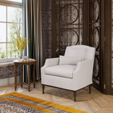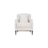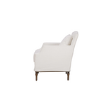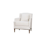 The St. James Slipcovered Chair offers timeless elegance with its clean lines and tailored silhouette. Upholstered in Arctic White performance fabric, it features a plush seat, matching pillow, and carved wooden legs—combining classic charm with everyday durability.