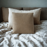 This neutral-toned square pillow features a subtle woven texture, offering a versatile and timeless look that complements any décor style. Its soft yet durable fabric makes it perfect for adding comfort and understated elegance to sofas, chairs, or bedding.