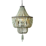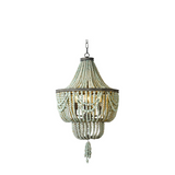Greet guests with a warm and welcoming glow in the entryway or dress up your dining room for an upcoming dinner party with this eye-catching chandelier. The Charlotte Chandelier is crafted from silver metal with a distressed finish, its circular frame and shade consisting of cascading green wooden beads for an eclectic and old world, vintage look.