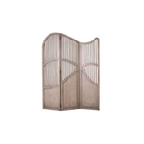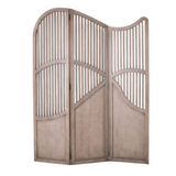 The modern style Holborn Divider is over 6' tall and constructed from solid mahogany in a weathered oak drifted wood stain color. This sturdy divider is perfect for any modern living room, modern dining room, boho living room or boho dining room.