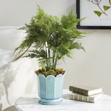 Experience the lush beauty of nature without the hassle. Our Plumosa Fern Drop-in is expertly crafted to mimic the intricate, feathery fronds of the real thing, and adds a touch of lush greenery. It comes in a standard sized cement pot to fit into a coordinating outer pot or planter, a versatile accent that brings the serenity of the outdoors in. Elevate your home decor with this low-maintenance fern, and enjoy the beauty of nature year-round.